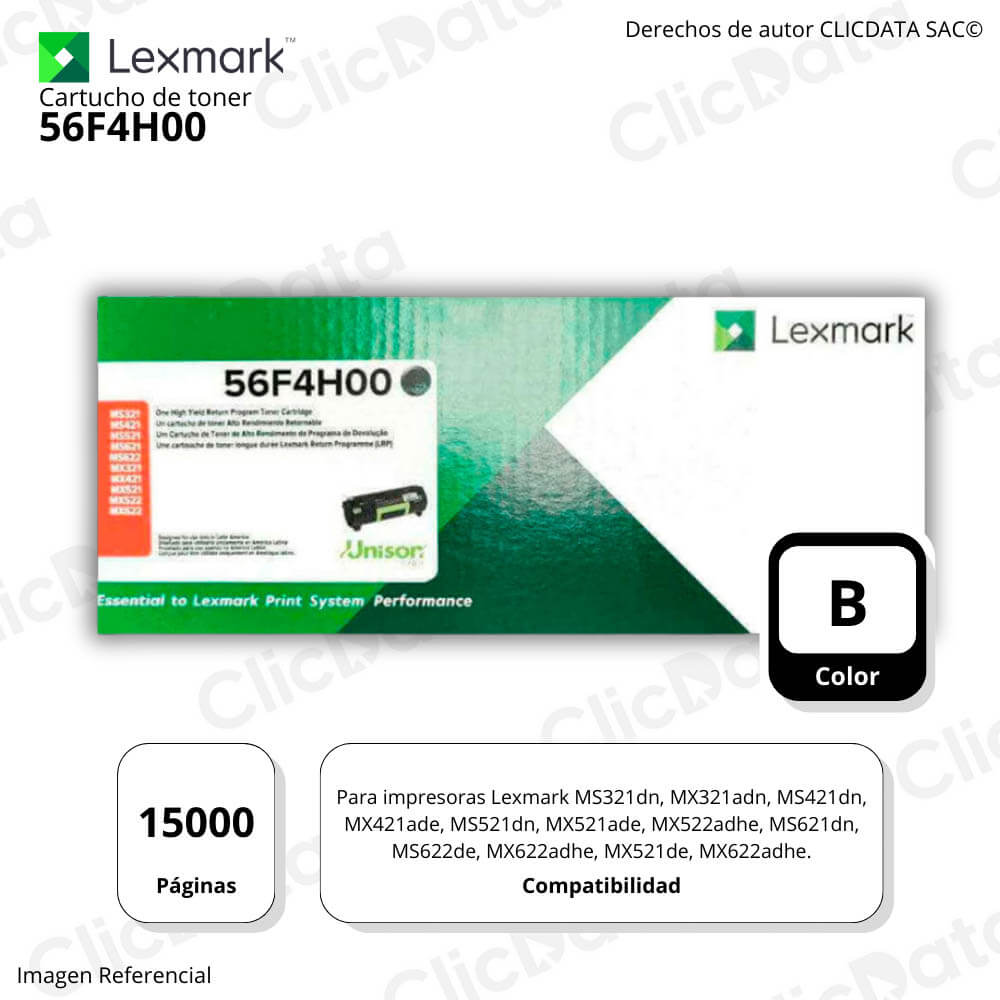 Toner Lexmark 56F4H00 Negro 15K Pág. MS421dn, MS622de Original