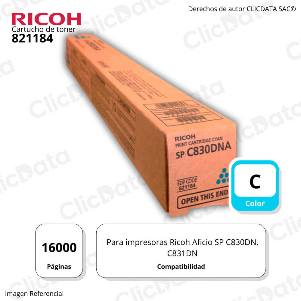 Toner Ricoh 821184 Cyan 16,000 Pág. SP C830DN, C831DN Original
