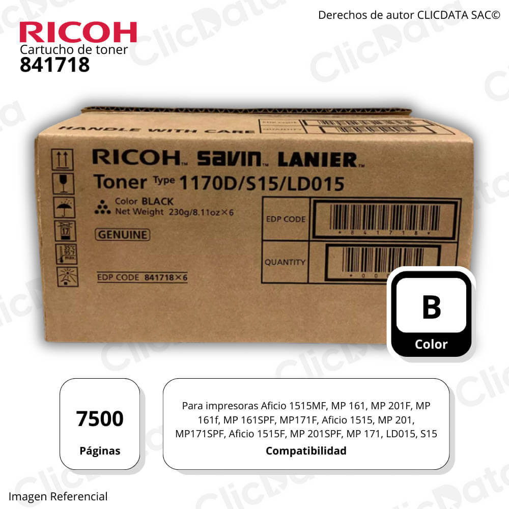 - Compatibilidad: Ricoh Aficio 1515MF, MP161, MP201F, MP161f, MP161SPF, MP171F, Aficio 1515, MP201, MP171SPF, Aficio 1515F, MP201SPF, MP171, LD015, S15